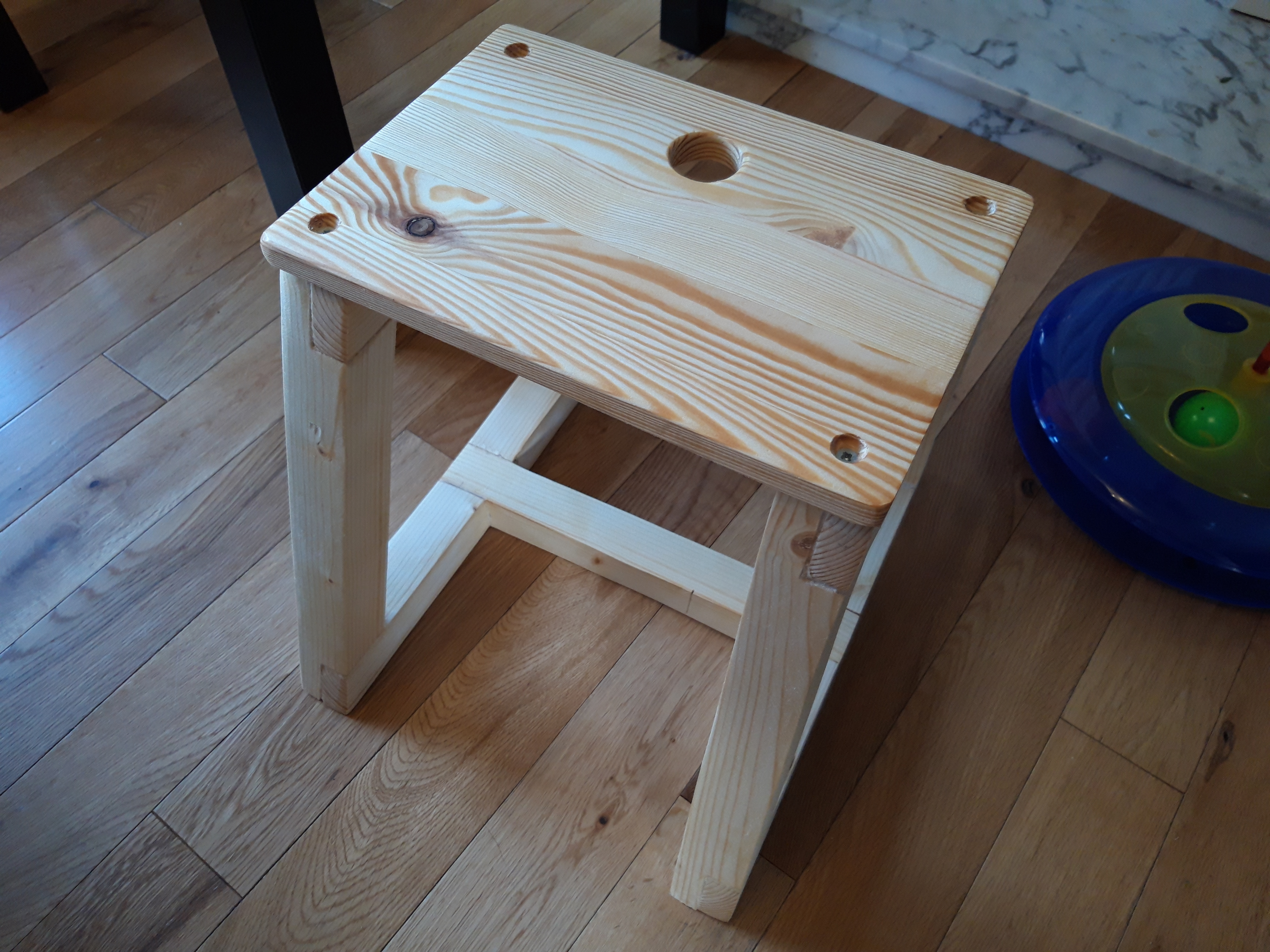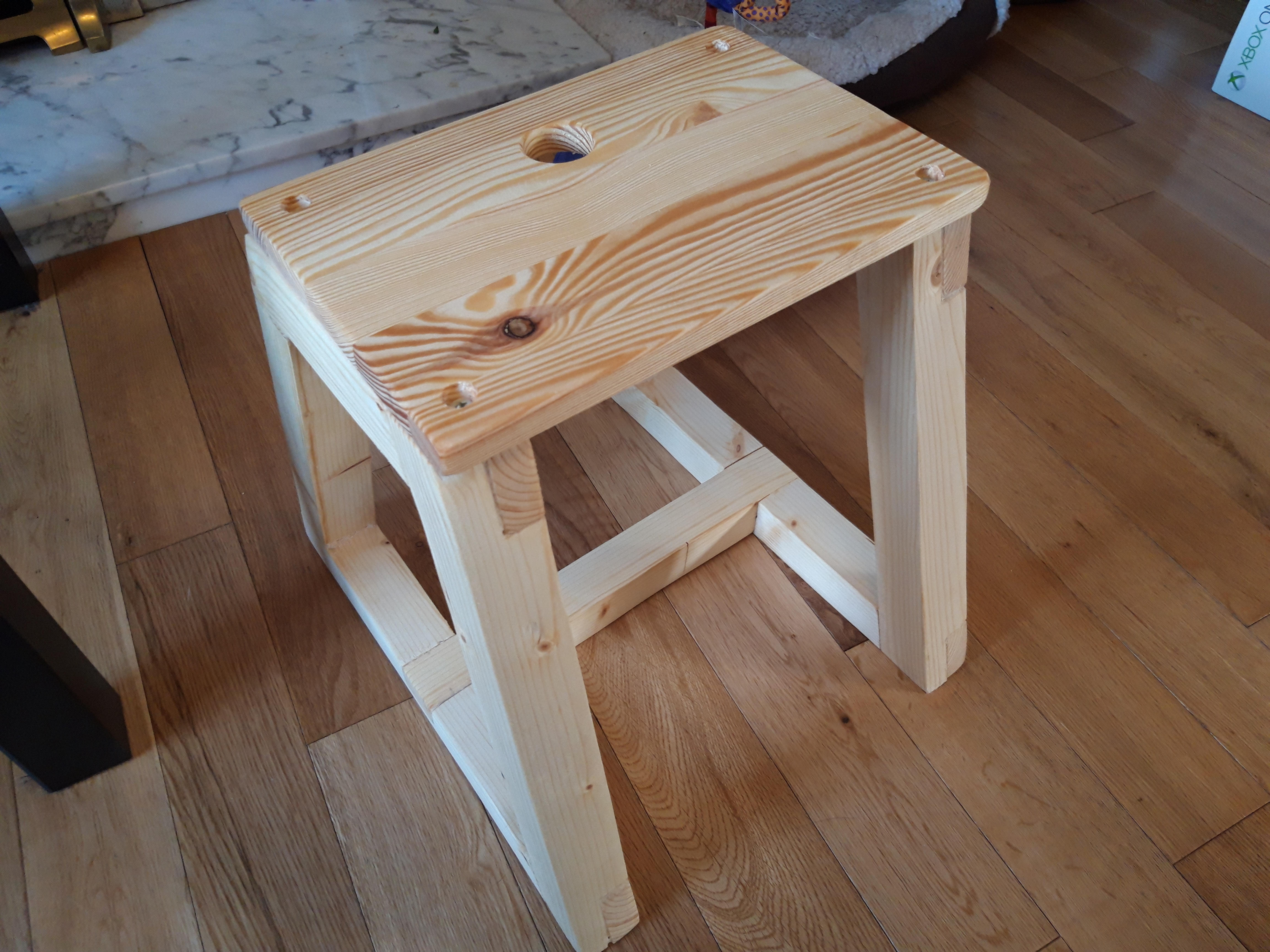 So upon reflection, as this was my first project I am very aware of bits that could be improved – some of my joints were not perfect due to the inaccurate angles – but that’s what makes the stool personal and unique. And seeing as I’m using this hobby as a way to try and move away from a perfectionist mindset, if the stool looks “pretty good“, will take my weight without collapsing (it will, I jumped up and down on it!), and I’m proud of what I’ve made, then it was a resounding success. And it has been well used in the living room already, and the cats don’t seem to totally hate it either. So here’s looking forward to starting the next project – I already have so many ideas of what to make next! 🔨