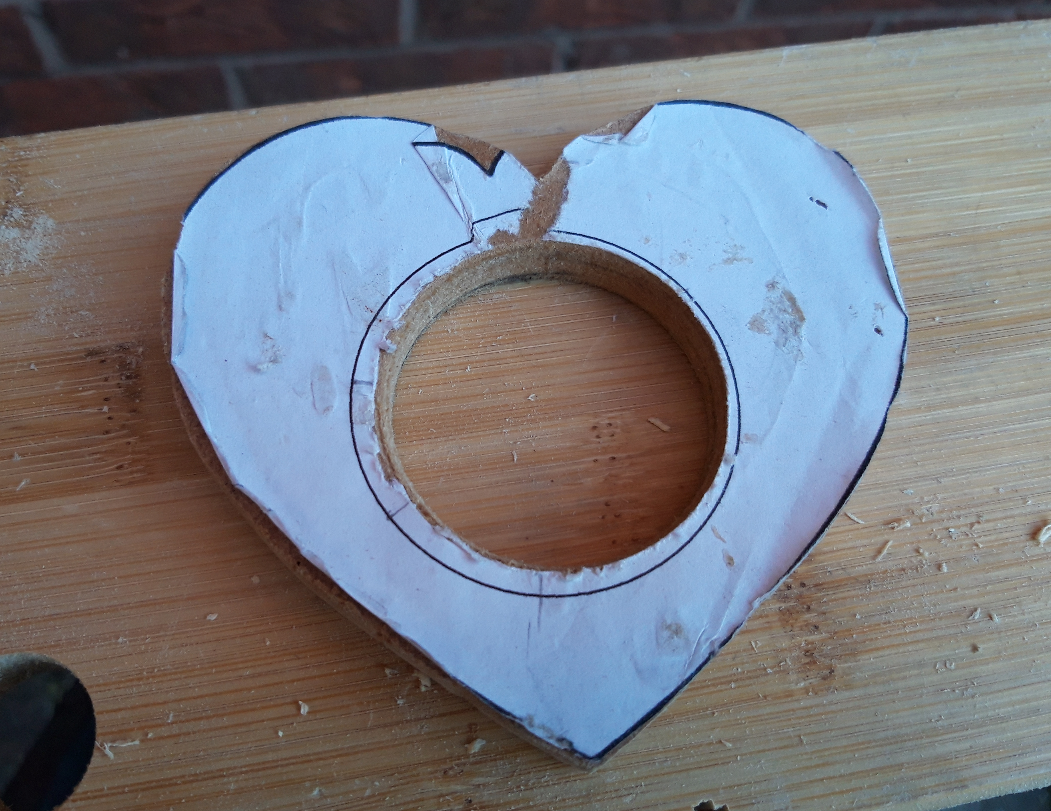 I then transferred the template to some pine and cut out the heart shape using a coping saw. Following that I sanded going up through the grits to smooth the edges of the heart and round the curves.