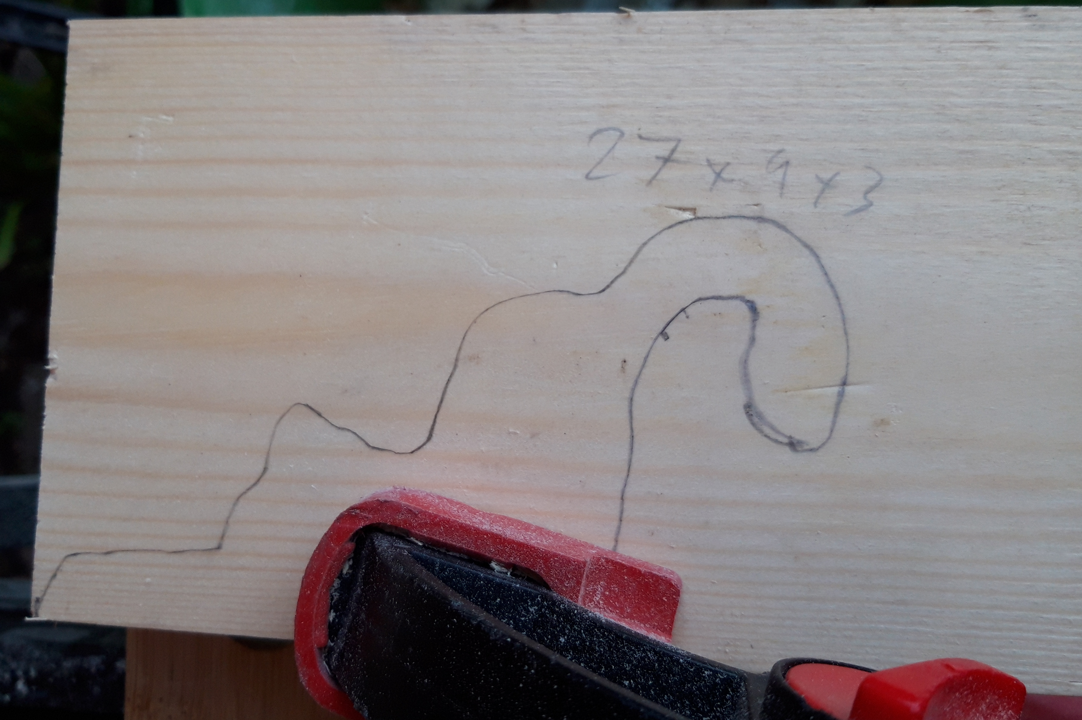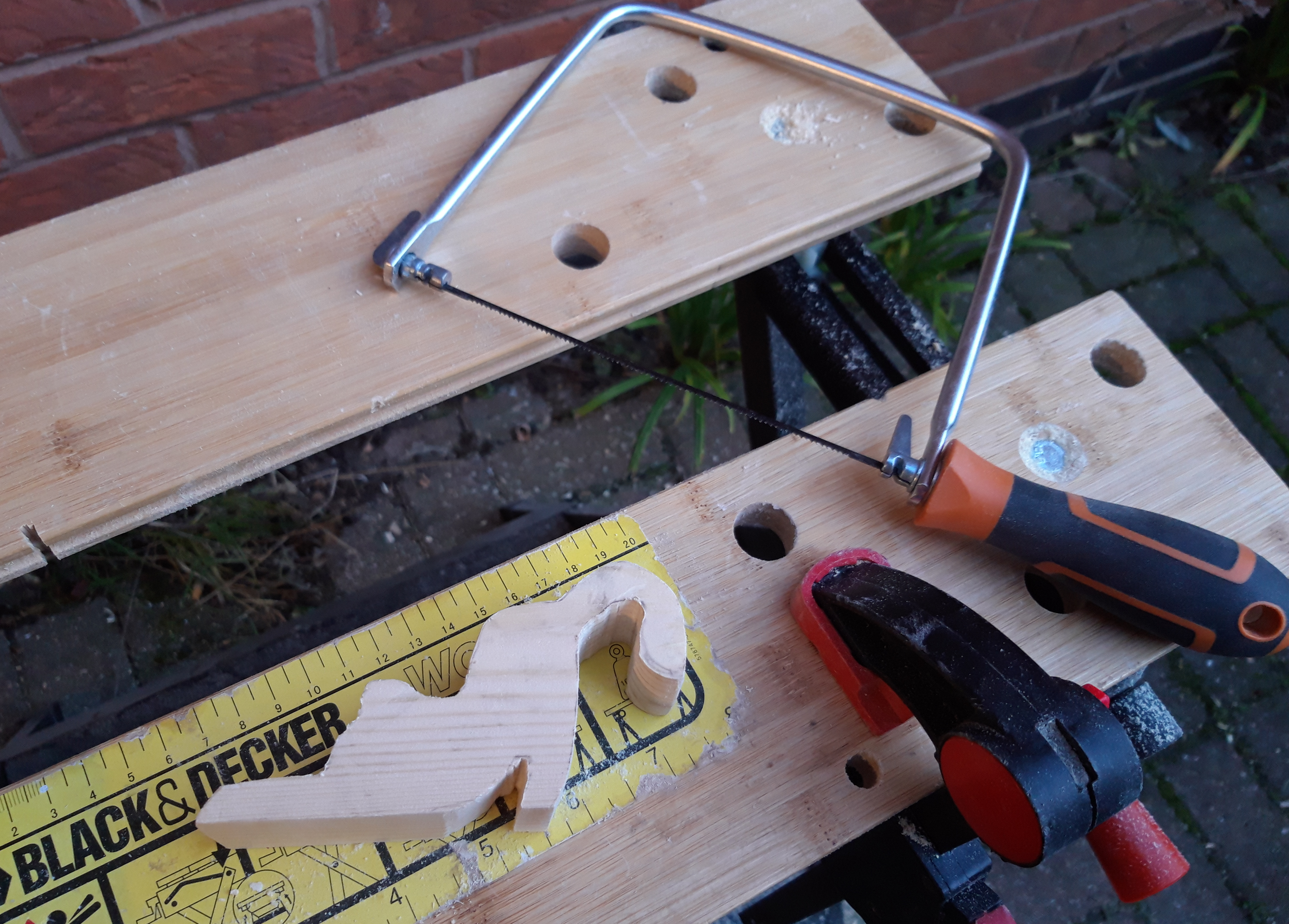 Once the template was finished, I transferred the design to a piece of pine and clamped it in place so I could carefully cut out the cat shape. I have really got my moneys worth from my jigsaw, as I have used it an awful lot for all of these small projects! Although I could have done all of the cuts by hand, the jigsaw just made everything quicker and easier, and when I am trying to make as much progress on a project as I can in between weather storms, anything which speeds up the process is clearly a benefit!