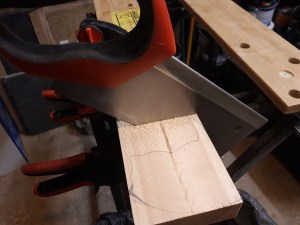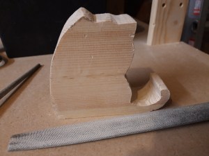 Once I completed the mdf template, I selected a piece of pine left from a previous project and transferred the shape onto it. I cut off the small section I needed using a hand saw and then went around the shape following the lines closely with my coping saw. Sometimes I like to do things by hand when I’m not in a rush, as I can take my time and enjoy simply working with the wood. It would undoubtedly have been faster to cut the section off with my mitre saw and then shape the design into the workpiece using my jigsaw, but doing it manually I find very calming.