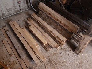 Lastly I decided to use another section of an old shelf unit we no longer needed in the house for the pallet slats. As the selection of pallets I have dismantled over the past couple of years have all been non-standard sizes, I have quite a range of planks with varying thicknesses and widths. So I spent a good 15 mins laying them all out and arranging them into some kind of order, writing the basic measurements on them to assist me with selecting lumber for projects in future.
