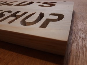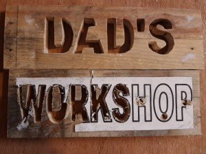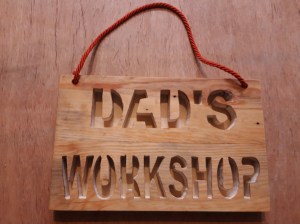 I applied some linseed oil to finish the sign and bring out the interesting grain in the wood, using the red cord to hang up the sign while it dried. I gave it to my Dad for Father’s Day last year and it is now hanging in his shed workshop! 🔨