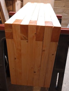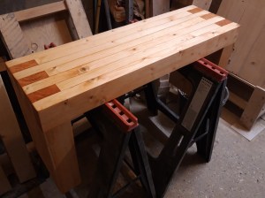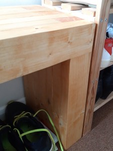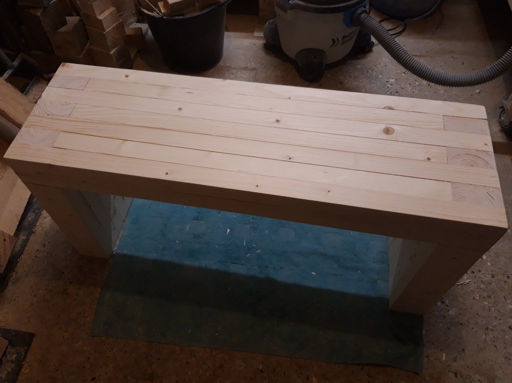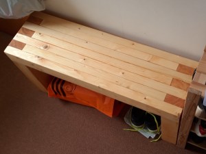 The front of the bench ended up being exactly in line with the front edge of the shoe cupboard – not an easy calculation when using 7 pieces of slightly varying sized constructional lumber cut to size and glued together! Now I have made three different sized versions of the same bench design, I have begun considering several ideas for variations to this style as well as lots of other interesting and practical projects to explore and share in future posts! 🔨