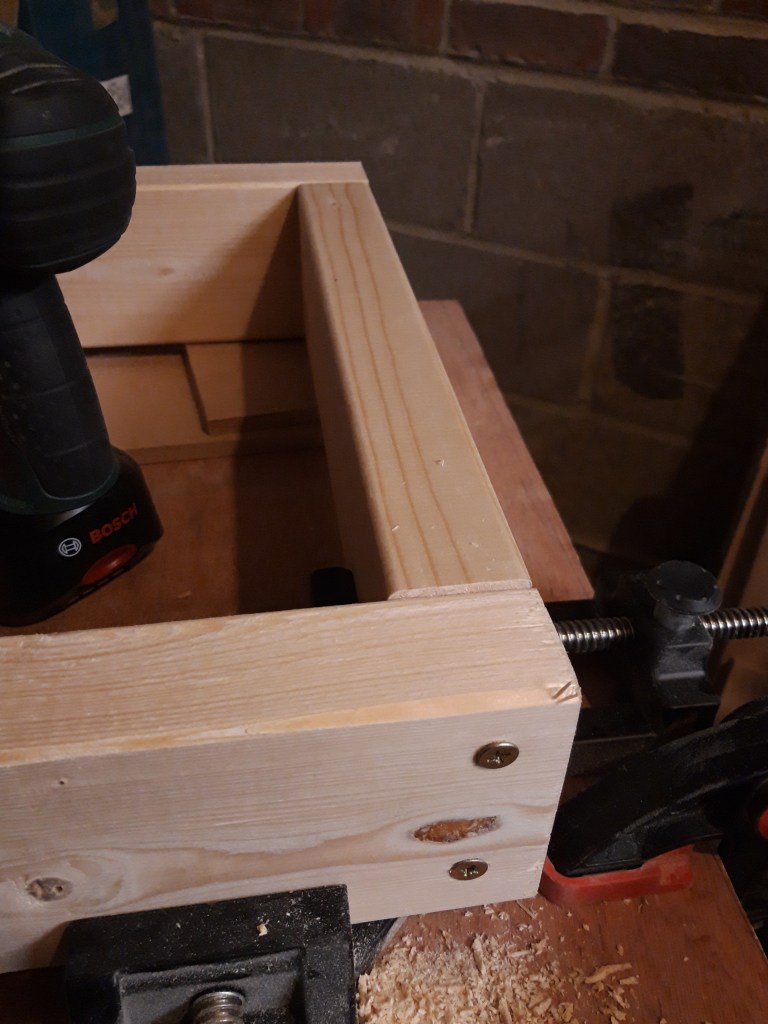 I used my corner clamp to make sure I was at 90 degrees on each corner and to assist with holding the wood in place while I drilled and drove in the screws. This was very easy to do but took a bit of time as I had to keep swapping between my drill bit and my screwdriver attachment. On my list of tools to invest in is an impact driver which will mean I can drill and screw more efficiently, simply swapping between the tools.