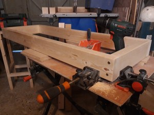 I turned the frame upside down and chiselled out a corresponding section in the top rear stretcher and then drilled and screwed in the back bracing pieces. These were quite a snug fit and should provide additional support to the roof in the centre, reducing the chance of it sagging over time.