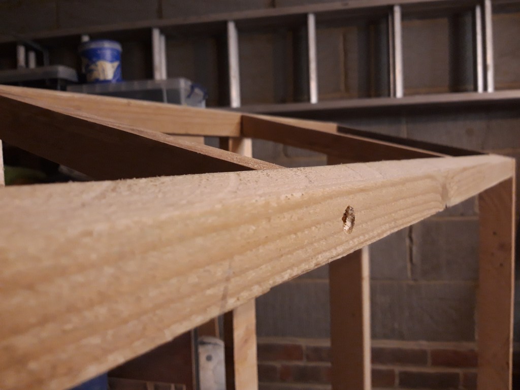 I was very happy with how this project was progressing and I could see the workpiece taking shape nicely. Now that the frame is completed, the next step is to create a solid slatted surface on top of the base frame for the logs to sit on and to add a solid roof to keep the rain off! 🔨