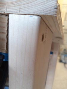 Once the base slats were in place, I made up a mixture of wood glue and sawdust and filled in a number of holes in the roof slats. When this was dried, I sanded the sawdust-glue mixture flush using my random orbit sander to leave a solid and smooth roof.