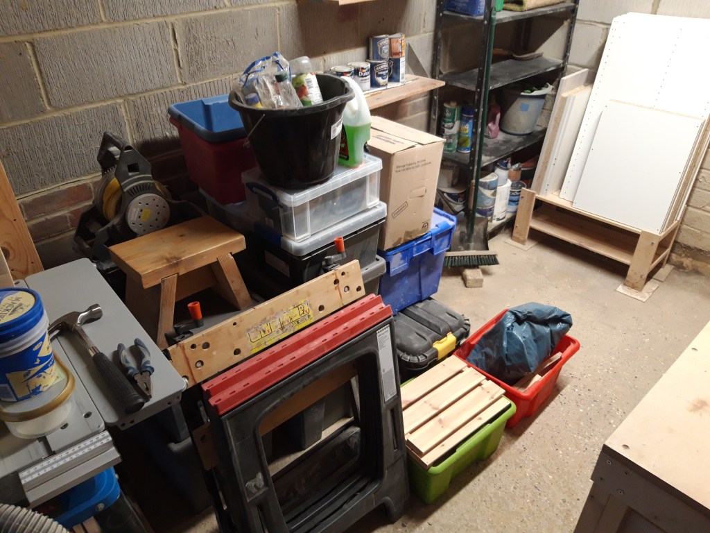 As the van was unloaded, I made sure everything was positioned in a semi-usable place to start with. The house is quite a bit smaller than the previous house, so parts of the garage workshop ended up quite full of a lot of temporarily stored things for the first couple of months as boxes in the house and garden were unpacked and sorted.