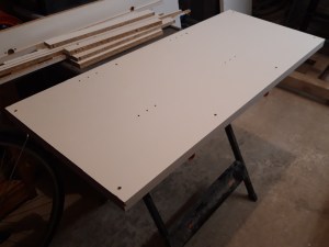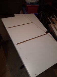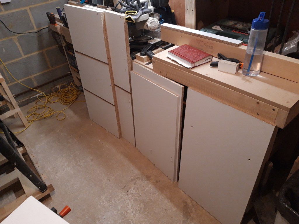 With two dismantled wardrobes, I now have a huge amount of white melamine coated chipboard. So it doesn’t go to waste, I decided to use it to make a set of free-standing shelves to go inside the fitted wardrobe. This will give me a lot more useable storage space, especially as the bottom section of the wardrobe is empty.