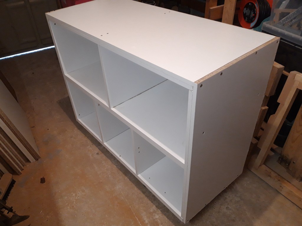 One of the drawbacks of moving into a house with fitted wardrobes, is working out how to fit clothes from a previous wardrobe into this one. The free-standing wardrobe we had at the old house had a number of shelves in it, which this one does not. Time to build something then!