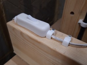 Once I had the LEDs in place, I mounted the switch on the end of my mitre saw fence and secured the wires in place with cable grips.
