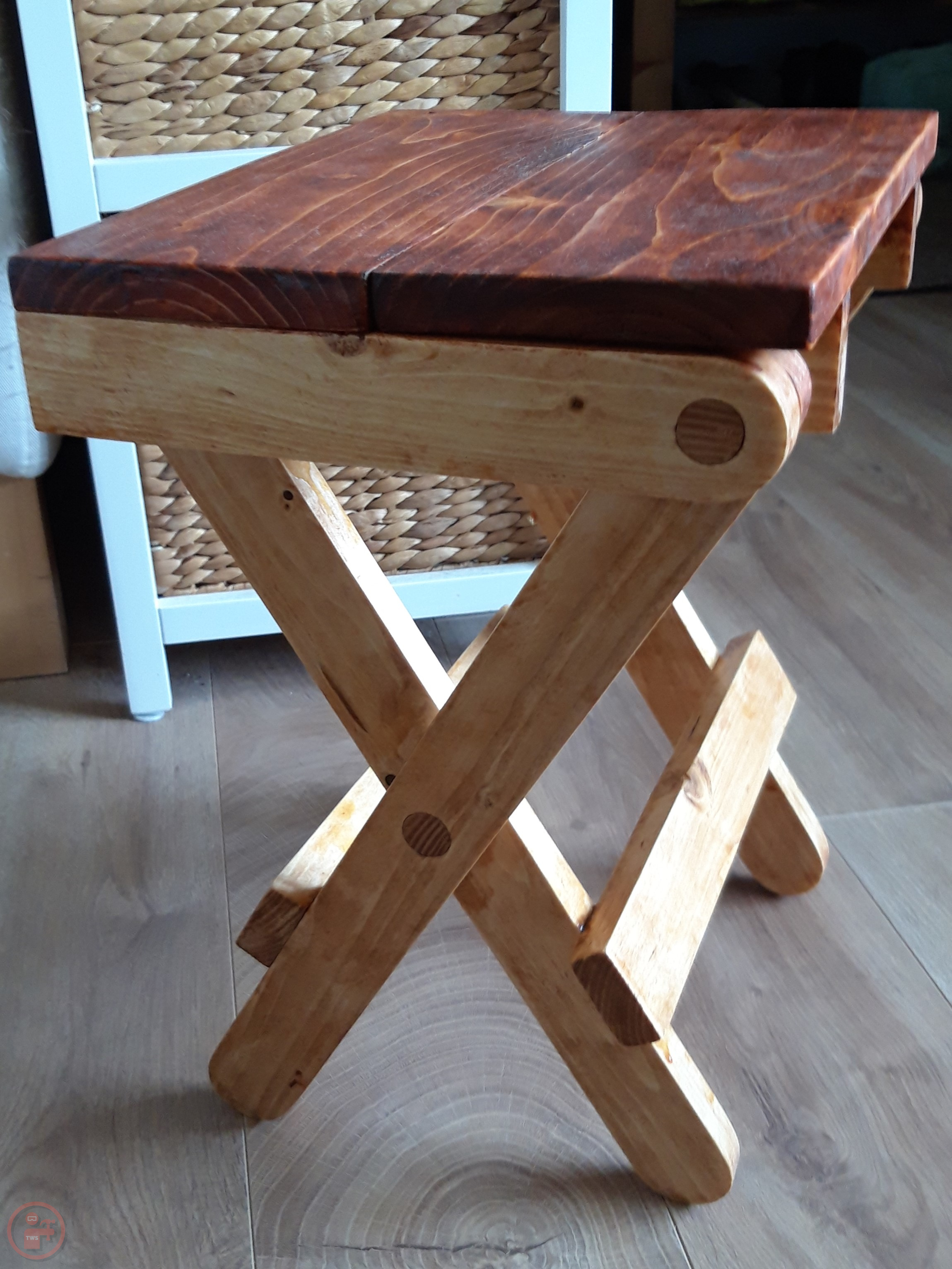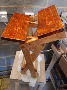 The grain in the dowels was an excellent contrast to the legs once stained and the two-tone effect works really well to highlight the grain in the seat, which really stands out, whether the stool is folded flat or opened out.
