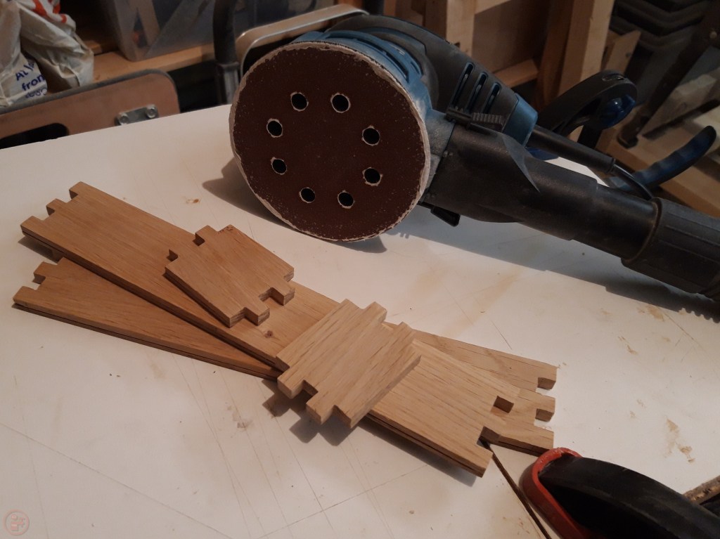 After I had completed all the joints, I then sanded all the side pieces thoroughly up to 180 grit using my random orbit sander, as it would be a lot more difficult to sand the inside of the box to a smooth finish once the side pieces are glued together.