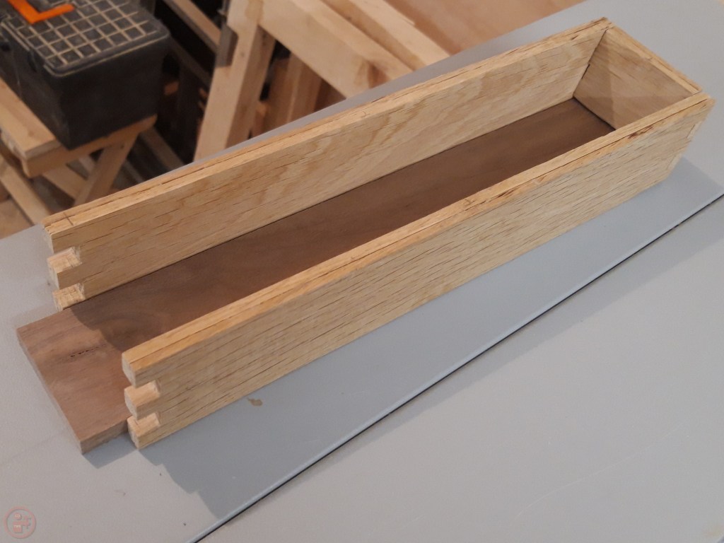 I did a test fit of the side pieces to confirm the joints were square and then measured the panel for the base of the box, using the sides of the box to give me an exact measurement.
