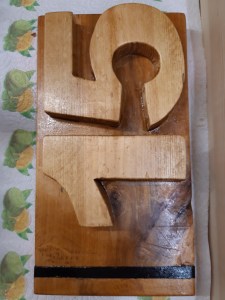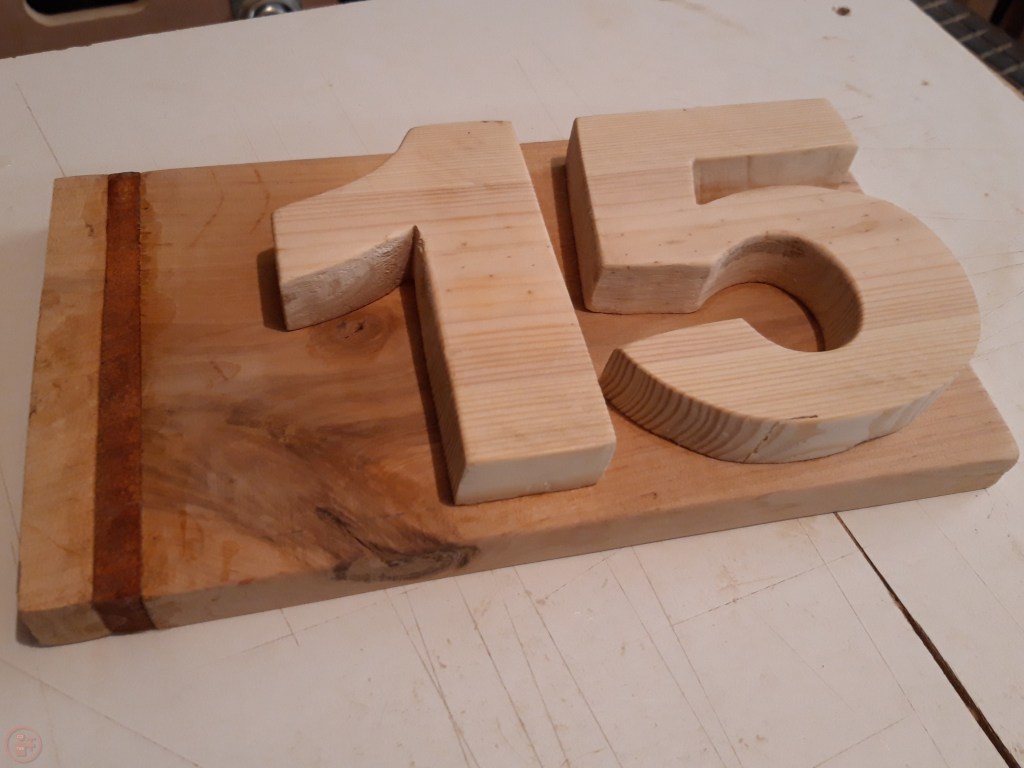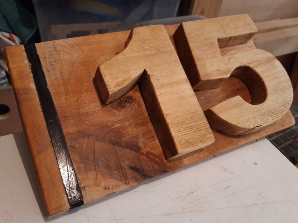 I wanted to add a feature to the number plaque to make it more interesting, so after scrolling through a variety of existing number plaques online for inspiration, I experimented with cutting off a section on the left hand side and staining it a darker colour. This looked quite good close up but wasn’t the look I was going for when viewed from further away as it was just too subtle.