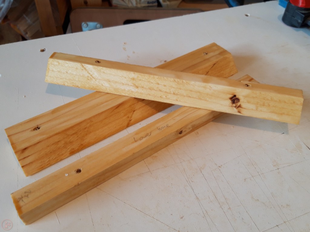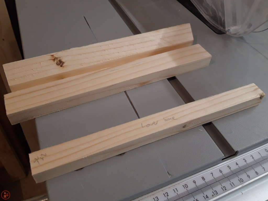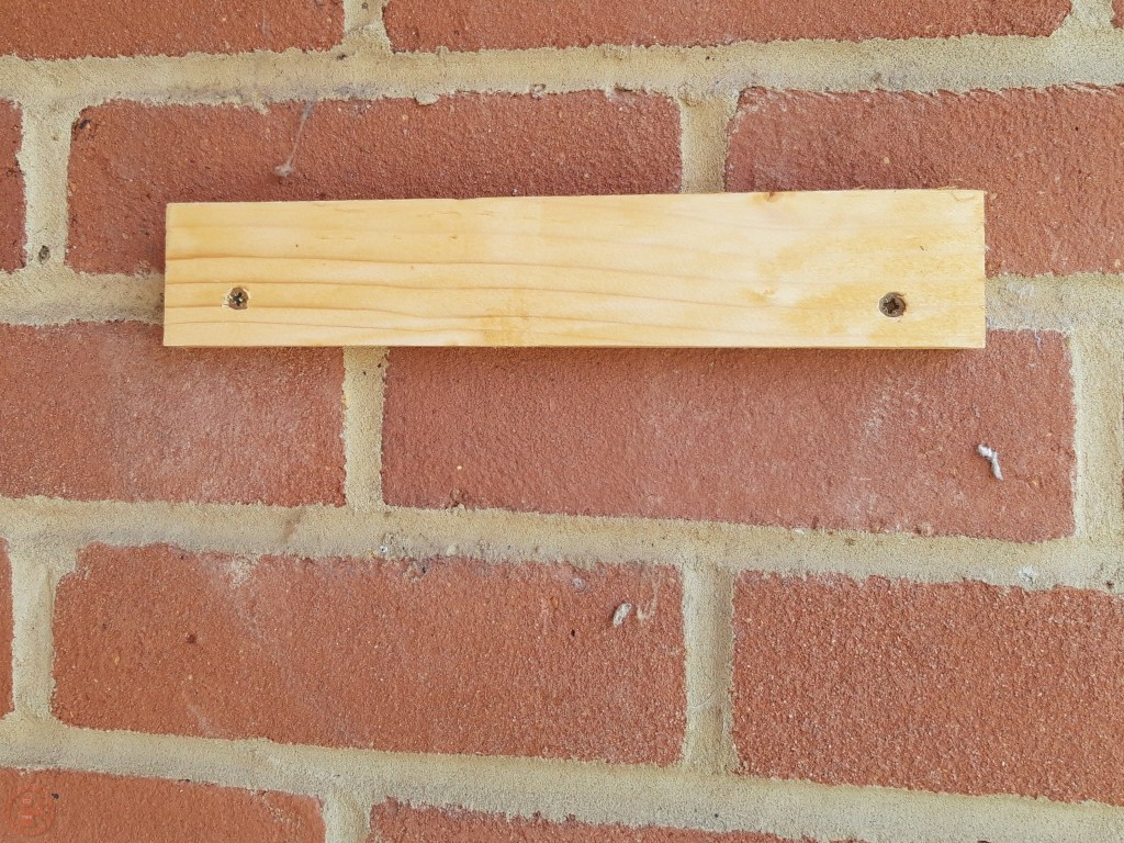 There were already screw holes in the wall outside with Rawl/wall plugs inside so I decided to mount the number plaque using a French cleat so I could easily make use of these holes. Also, this way I could easily take it down if I needed and having the plaque further from the brickwork made the plaque a bit more 3D and stand out from the wall. I cut a piece of scrap pine to 45 degrees and an additional baton as a rear brace for the lower part of the plaque, so the bottom of the plaque would also be braced against the wall. This would give it additional stability in the strong winds we regularly have and not put additional pressure on the French cleat by making it flex.