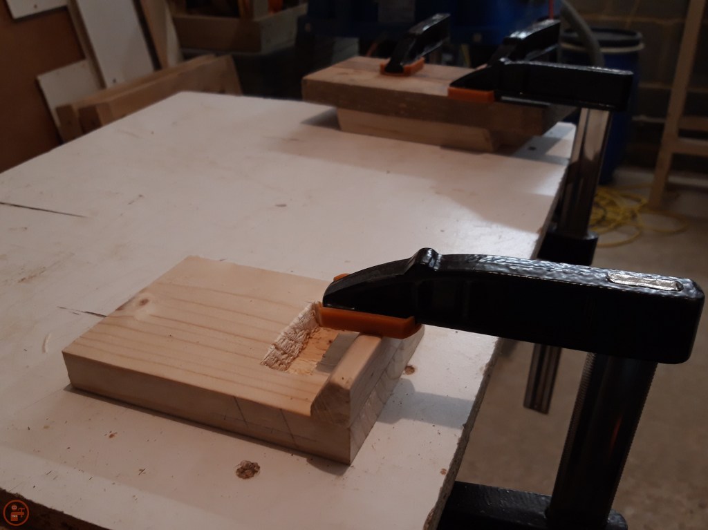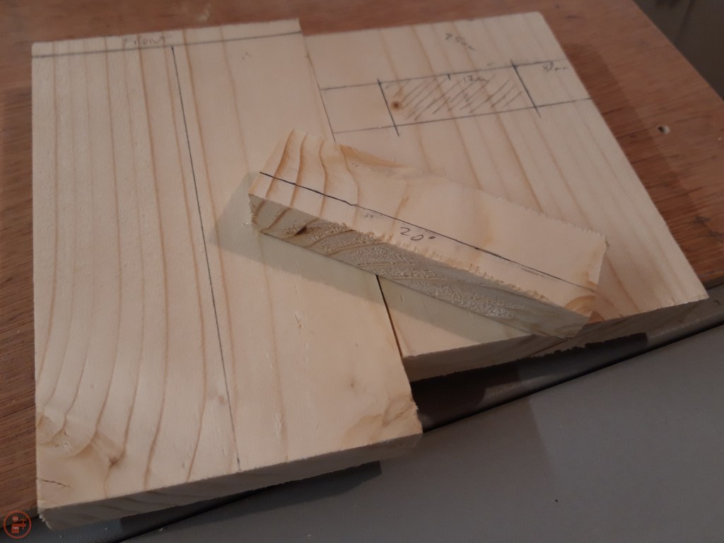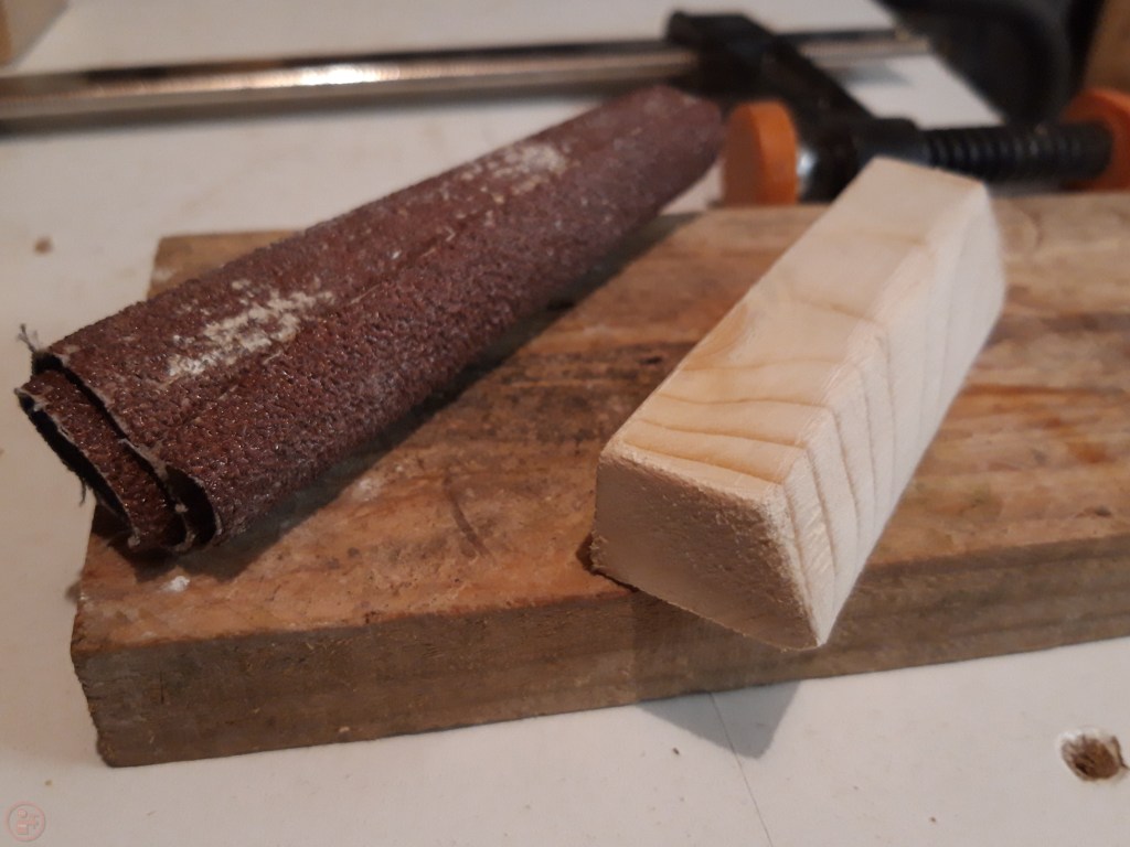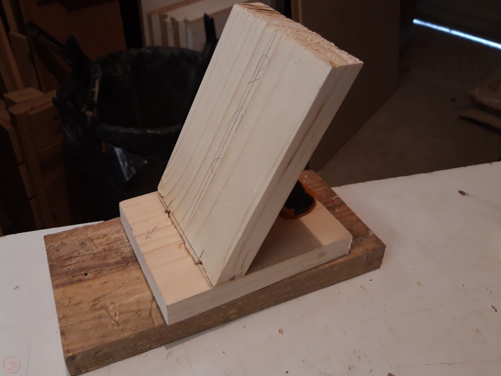 I sanded the piece of pine to act as the stop by hand, ensuring it had a suitable angle to be an effective brace for the phone.