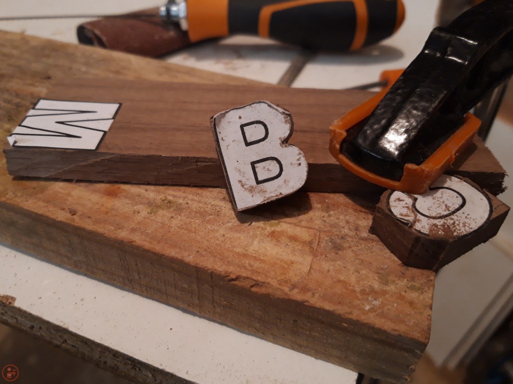 I recently picked up a new woodburning tool, so thought this was an opportunity for an interesting experiment to add a highlight around the edges of the letters. The walnut took the burning quite well but there was a bit of bleed in the pine, so something to keep an eye out for in future projects.