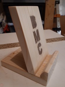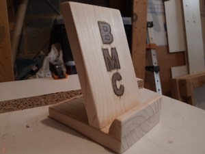 For my brother’s birthday earlier this year, I designed and made him a personalised mobile phone holder, so he has somewhere to put his phone on his desk. I selected some pine to make the main body and some walnut to use as a feature for his initials within the upright section.