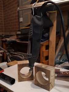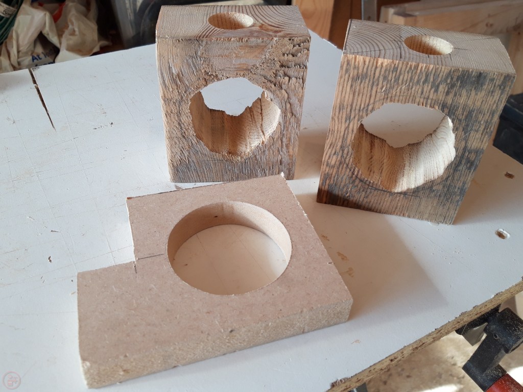 I drilled two holes in the sides of the holders and then made a jig out of some scrap mdf so I could size the hole on the side correctly.