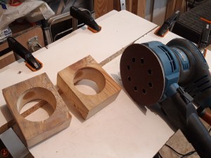 After sanding the inside of the holders, I used my random orbit sander to smooth the outside. I worked my way up through the grits to 180 grit, which left me with a lovely smooth surface and showed off the hidden grain for the first time.
