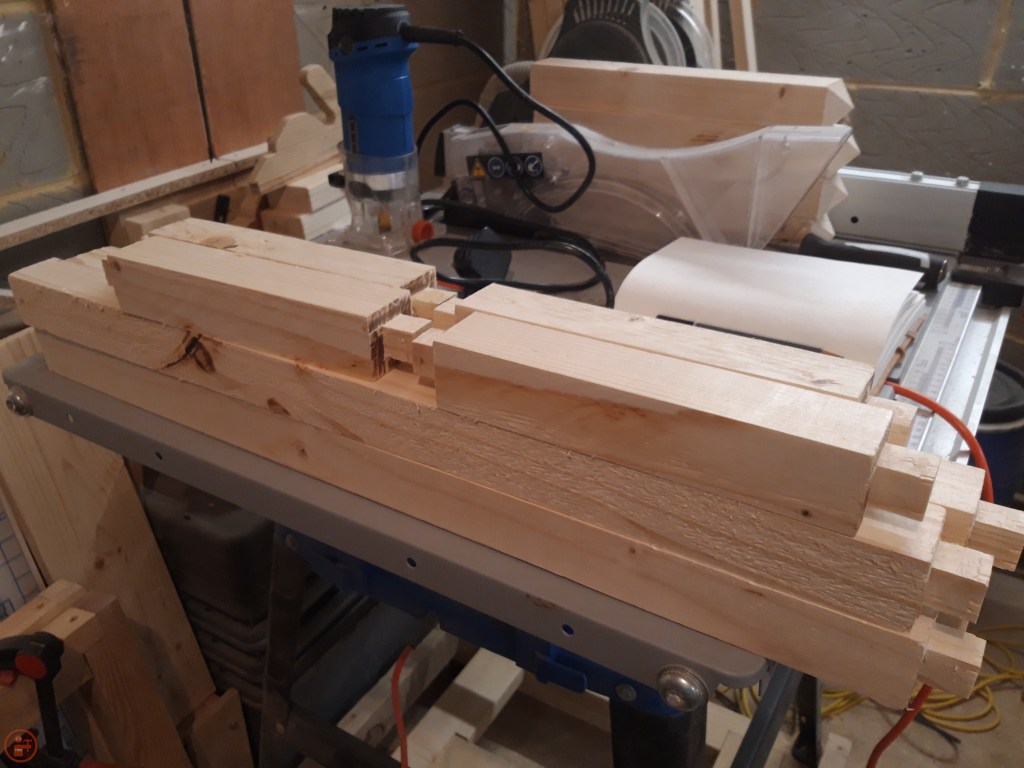 Now I had all the material I needed, it was time to start assembling this project! I decided to use mortice and tenon joinery for the joints to provide a nice solid and stable construction, with plenty of surface area for the glue up. I used my router and a dedicated router jig (separate post to follow) to take off material on the end of each stretcher. Where a large number of repeated cuts are required, I always find it beneficial to make some kind of a jig – it makes it much easier to achieve repeatable results and also reduces the complexity involved in such a cut, allowing me to focus on keeping safe, something especially important when making a lot of the same cut, as it’s easy to switch off!