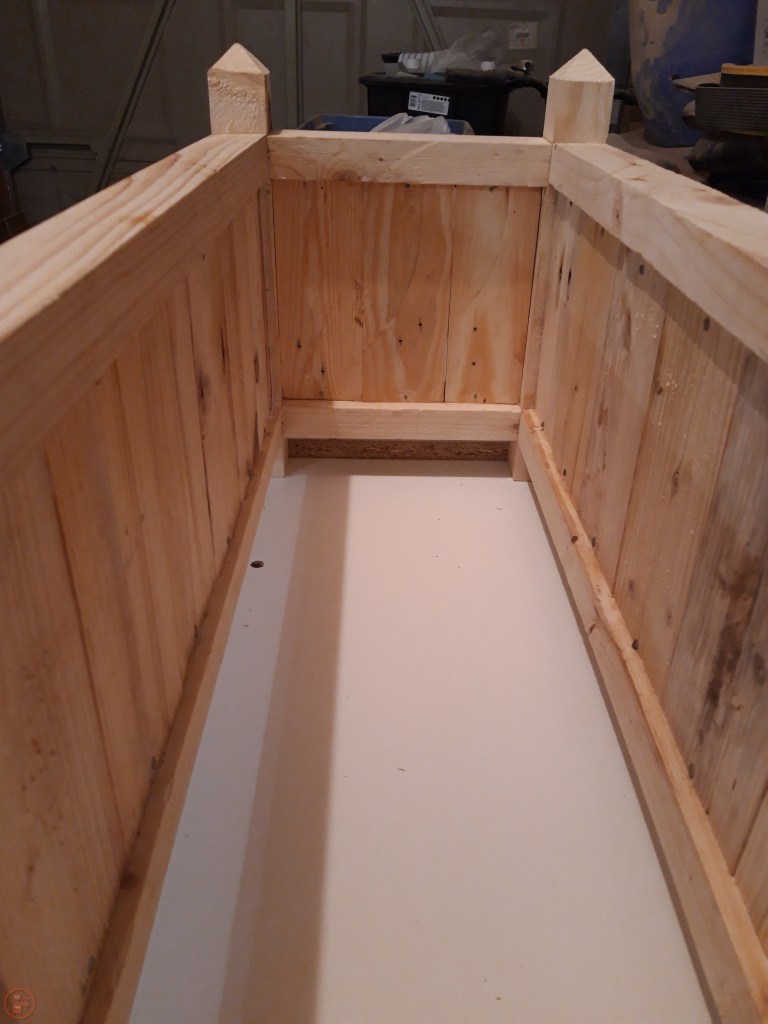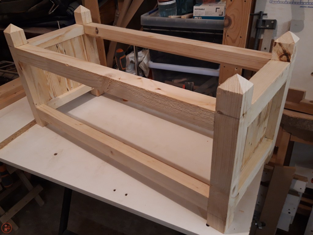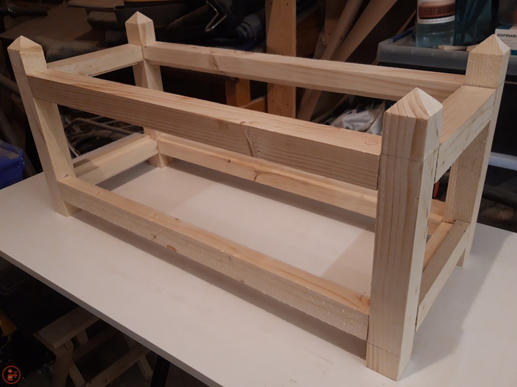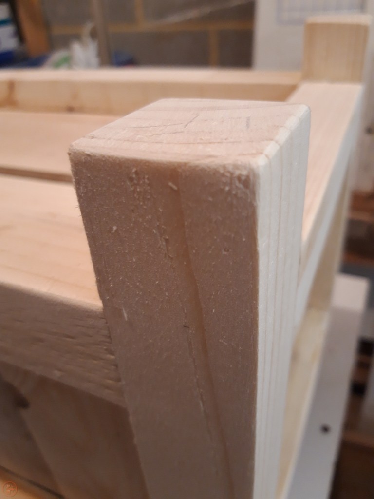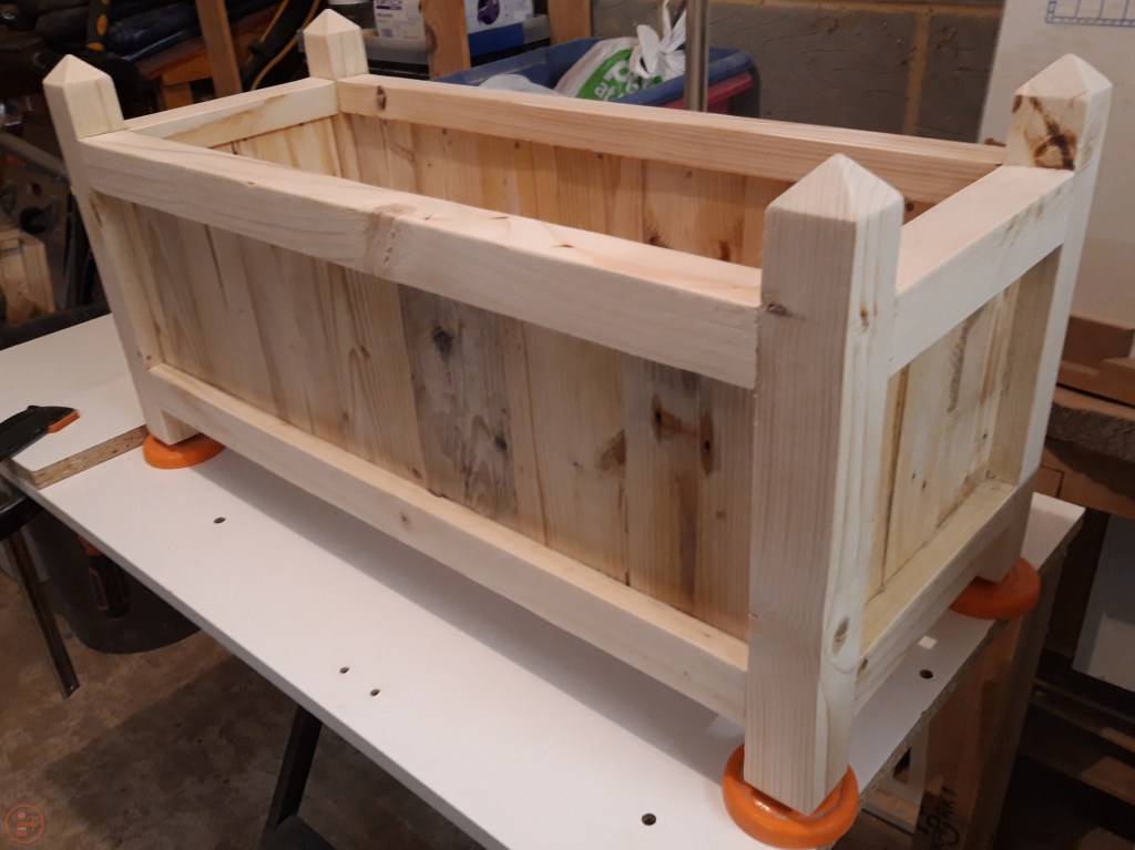 As these were going to be outside and painted, I didn’t see the need to sand the planter to a super high grit. I sanded up to 80 grit to remove any sharp edges and minimise the risk of splinters when moving the planters about! I also added a slight bevel to the bottom of the legs to reduce the likelihood of splitting when the planter is moved.