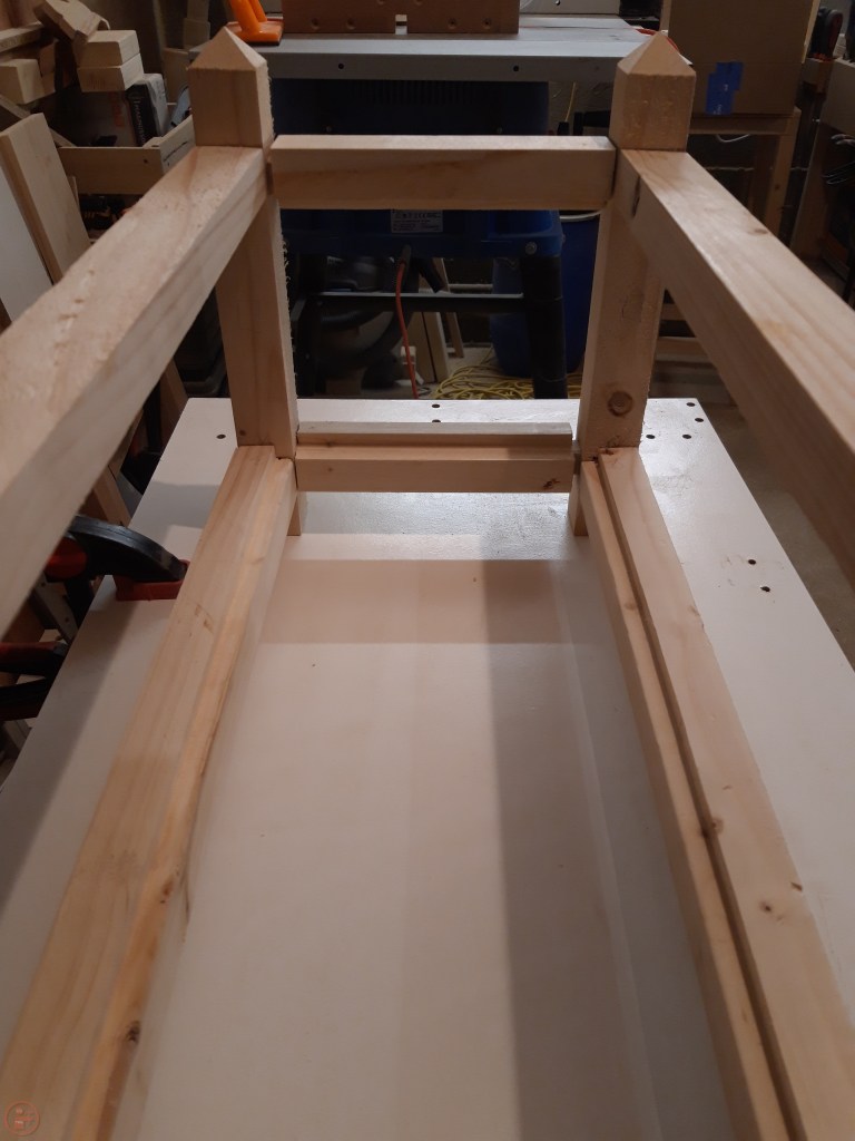 I doubled the width of the groove on the short stretchers to give me space for both side panels as well as the base to have a solid surface to sit on.