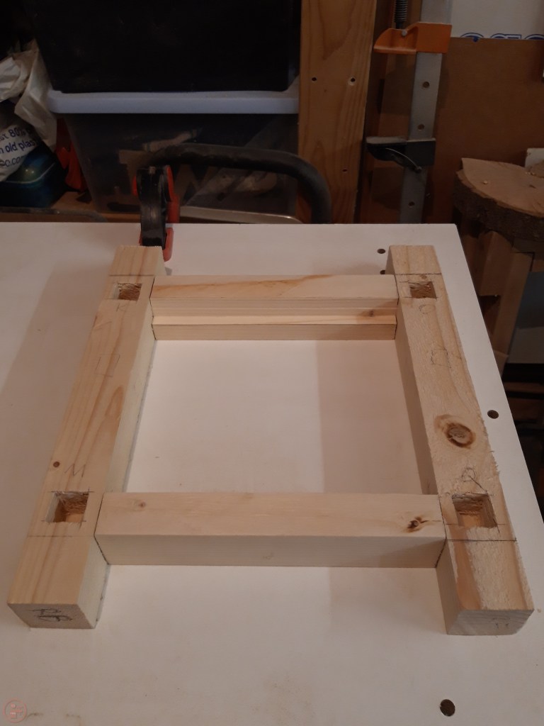 I was very pleased with how the frame came together and the tenons fit well within the mortices, with the ends also acting as a mitre joint between the stretchers in the mortice.