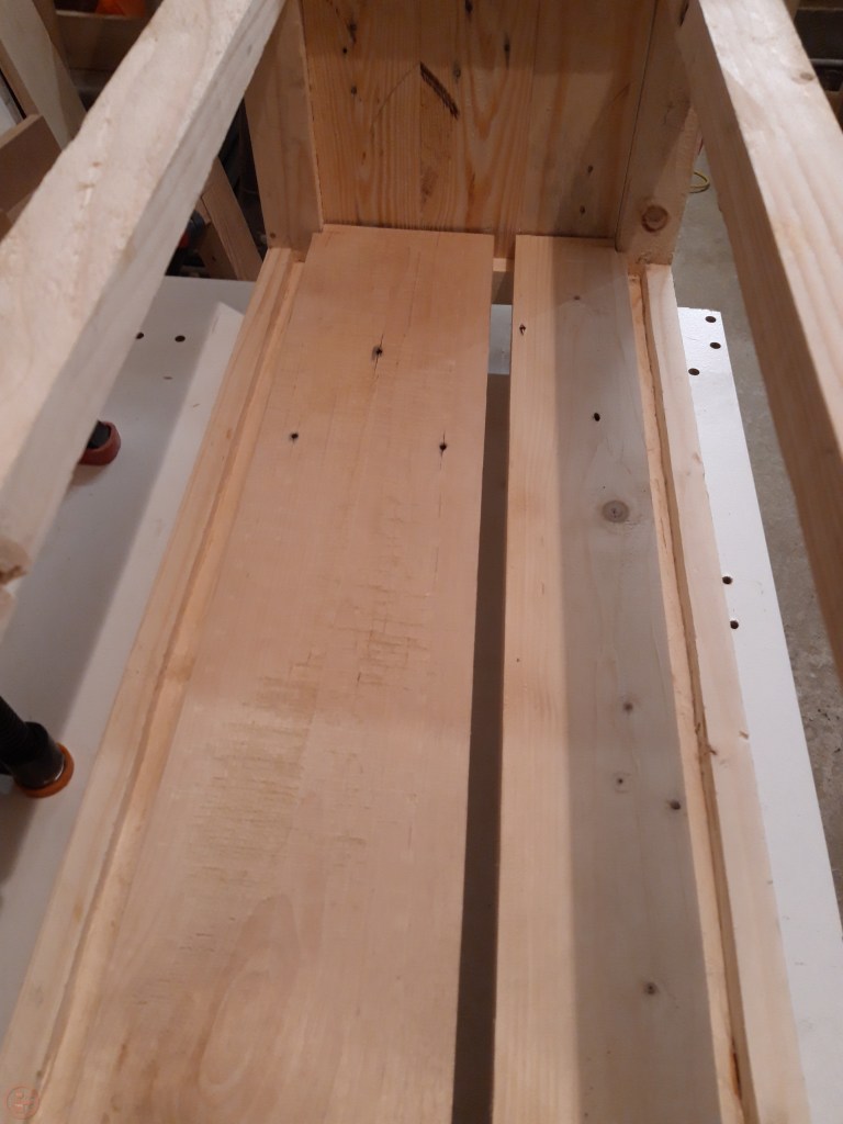 Following the final dry fit, I progressed to figuring out how the base and side panels would connect with the rest of the frame. I could have kept it simple and just nailed panels to the inside of the frame, but I wanted to maximise the inside space as well as provide a solid base to take the weight of the soil. I therefore made a rudimentary Router table and suspended my palm router upside down (separate post to follow). This allowed me to better control a narrow workpiece and through the use of push sticks and guides, I successfully routed a groove along the length of each stretcher.
