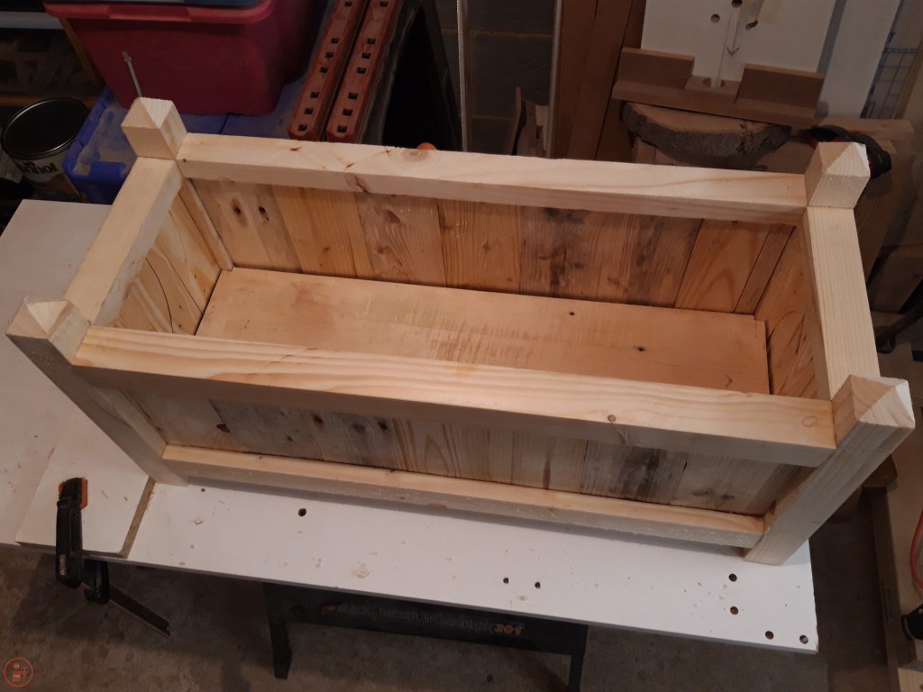 Once the frame was dry, it was simply a case of slotting in pallet wood slats for the base and gluing and nailing them into place. I used my hand plane to create a gap between the boards of the base to allow for drainage and prevent the planter becoming waterlogged in our seemingly constant British weather!
