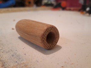 I added a slight taper to the top of the light pull and then hand sanded up to 180 grit to make the light pull really comfortable to touch. I wanted to give the oak some protection from repeated handling, so applied some boiled linseed oil.