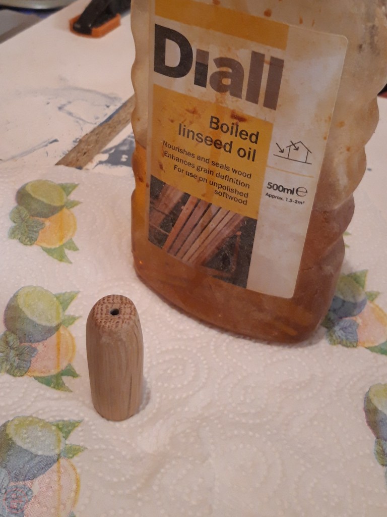 The linseed oil darkened the light pull and really brought out the grain of the oak. I left the light pull to dry for several hours until it was fully dry.