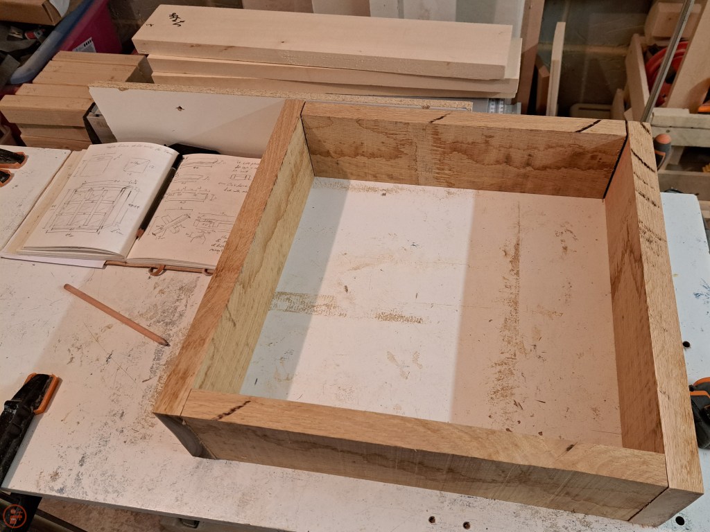 My customer requested a hardwood, like oak, for the frame, so provide a darker colour to match the aesthetics of their existing bathroom furniture. And for the crosses, I selected some cheaper basswood that would allow me to easily cut it to the cross shapes as well as dye it a red colour using red wood dye, so the crosses would stand out against the darker oak frame.