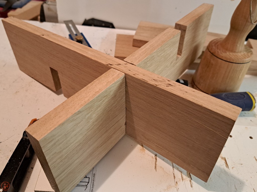 I also did a dry fit with the crosses before applying glue, so I could check the notches and also so I still had the option of refining the size if needed, following assembly of the frame.