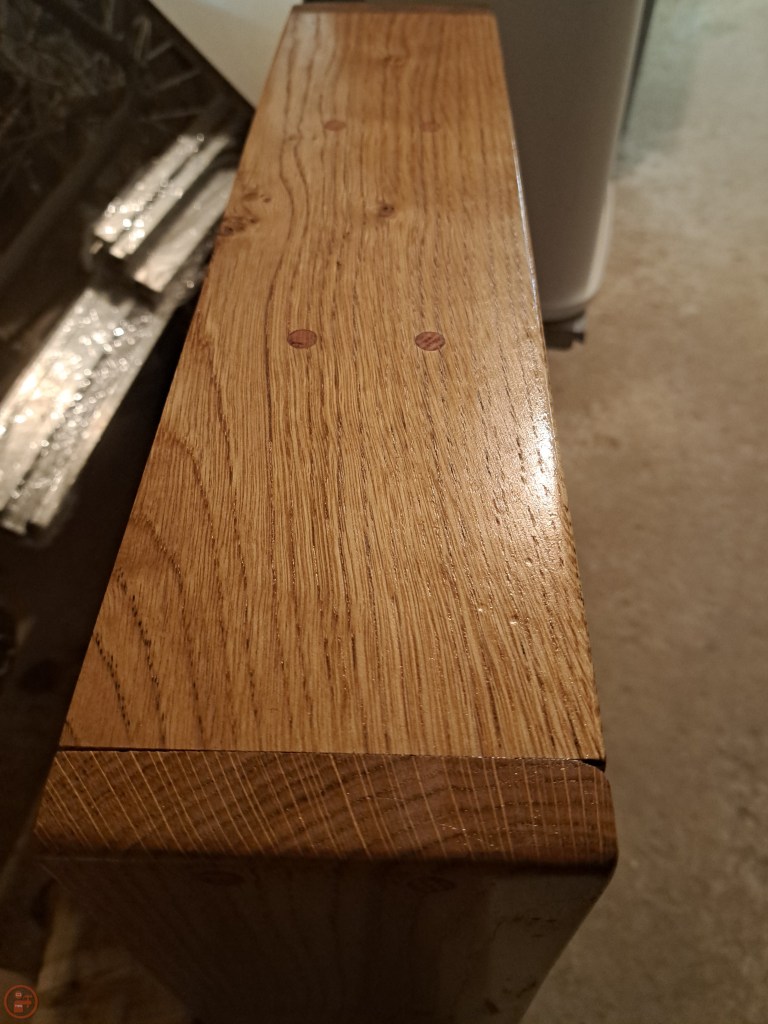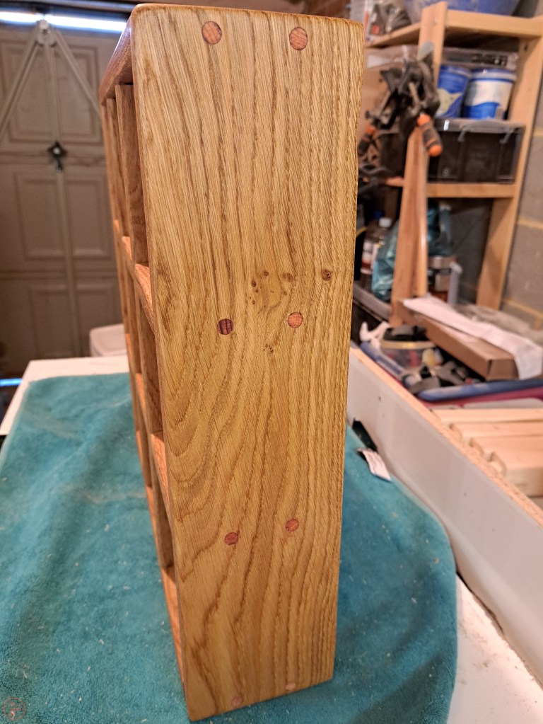 I finished the oak using mineral oil to give it protection, while also being food safe – I didn’t want to use a finish that might be absorbed by the loo roll over time and potentially cause some painful irritation! The mineral oil was very easy to apply and really brought out the colour of the oak grain, as well as the colour of the dowels too.