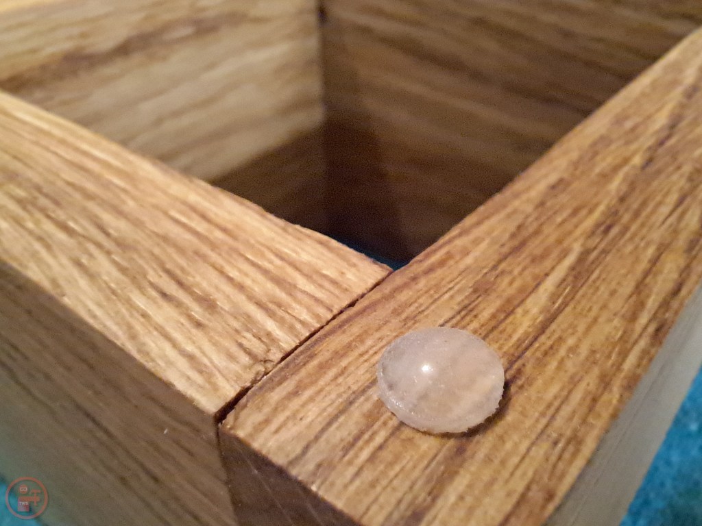Pleasingly, everything was as planned, and the crosses fitted inside the frame well, with a little wiggle-room to slide them in and out easily. I applied glue to the crosses and moved onto the next stage – staining and finishing!