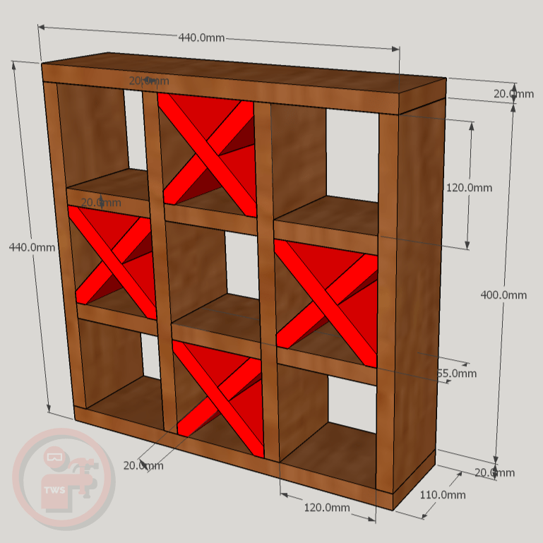 The first step was to determine dimensions to ensure a selection of loo roll sizes would fit, as to ensure whatever brand they buy in future will continue to fit easily and not require squashing! After some measuring, I worked out appropriate dimensions and drew a few sketches in my woodworking planning journal, before modelling it in SketchUp (not sponsored). The idea is for the loo roll to make the noughts and then to have wooden crosses for the other pieces.