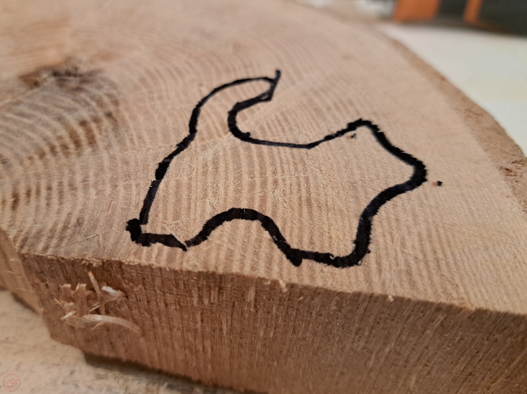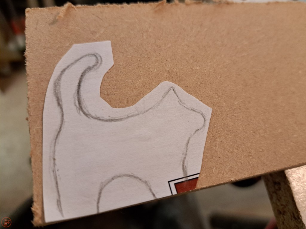 I started with a quick rough sketch to work out approximate dimensions for the finished carving. I then drew a design out on paper and cut out a template on mdf, so I can make more in future or in case there was an issue with the first version.