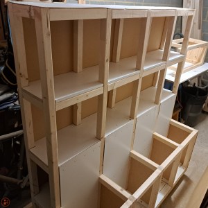 - Making the shelves, dividers and panels, as well as loading up the finished lumber cart (this blog post)