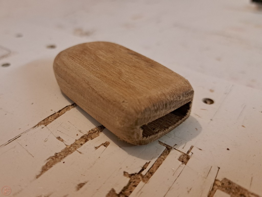 I decided to make a sheath out of oak to protect the blade, with a leather surround and belt loop, so my Mum could have options for how to carry it around.