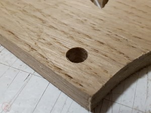 I used a cutting bit in my Dremel to gradually remove more material. I put several strips of tape on the back of the workpiece to reduce tear-out and then kept lowering the cut depth until I reached the other side of the board.
