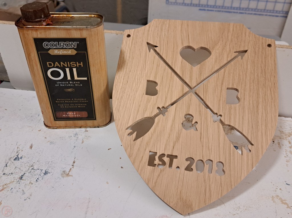 I decided to use some Danish oil, as it has UV protective qualities, which should make sure the oak still looks good after several years, even if it is hung in direct sunlight.