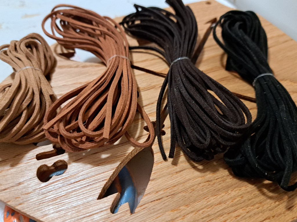 Once the oil was fully soaked in, I sorted through my leather cords to choose one of the right colour for the hanging loop.