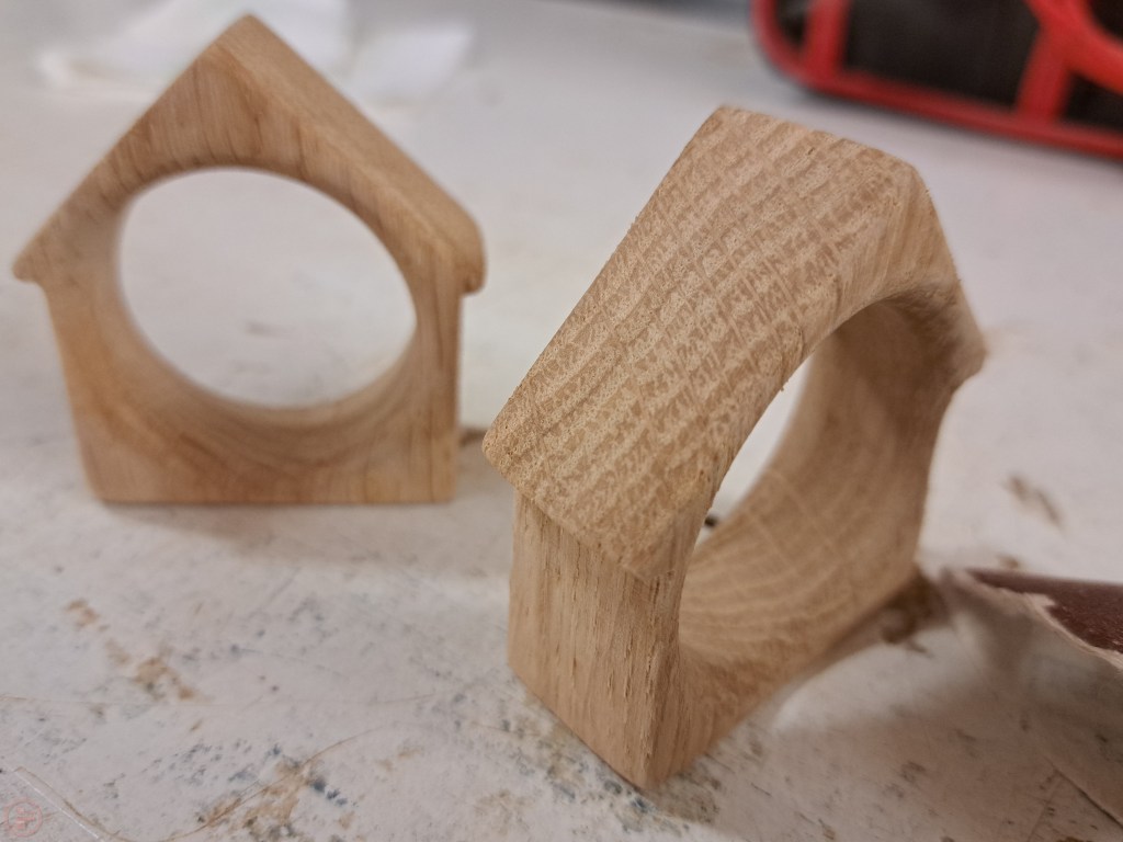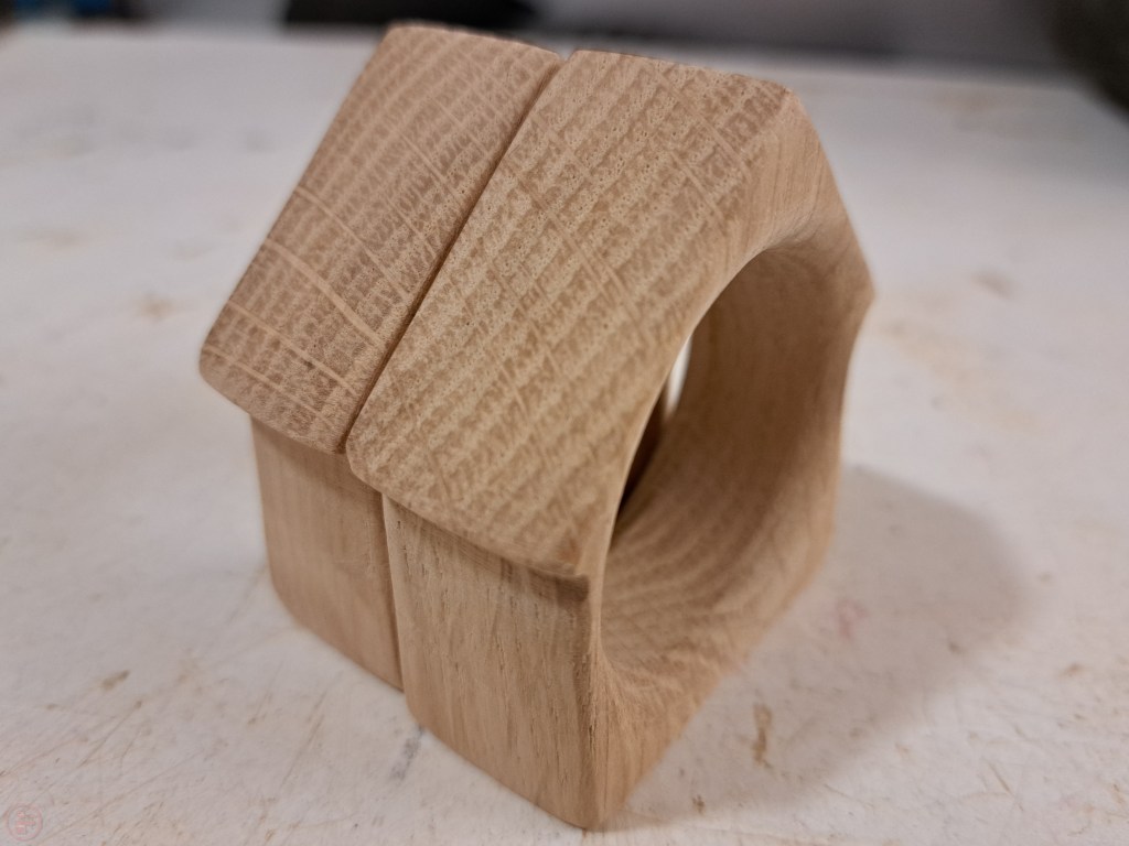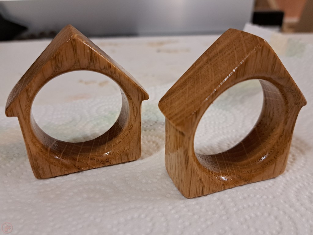 The final result was a nicely smooth house-shaped ring, ready for finish. I decided to use mineral oil as it’s food safe and is used for cutting boards and other utensils.