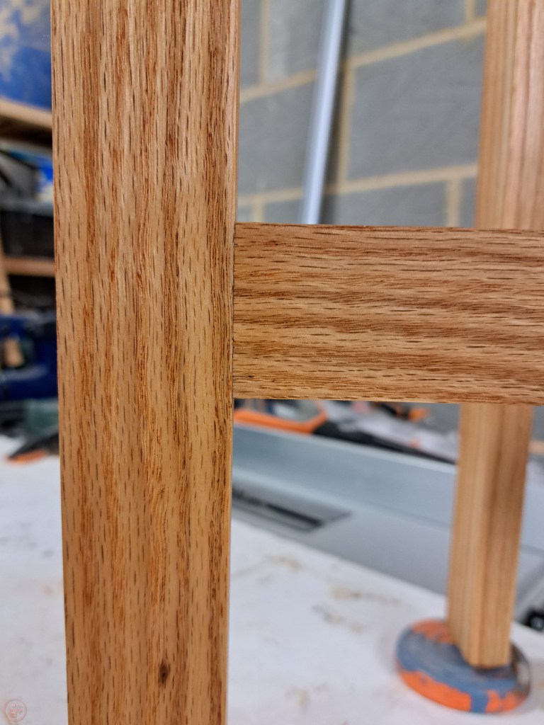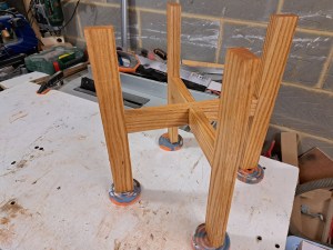 I applied Danish oil as a finish to bring out the grain – I really like how the grain makes tiger-like stripes on the legs! I’m really pleased with how the joints turned out too, as they are very snug and the centre pieces pleasingly sit flush to the legs on all joints.