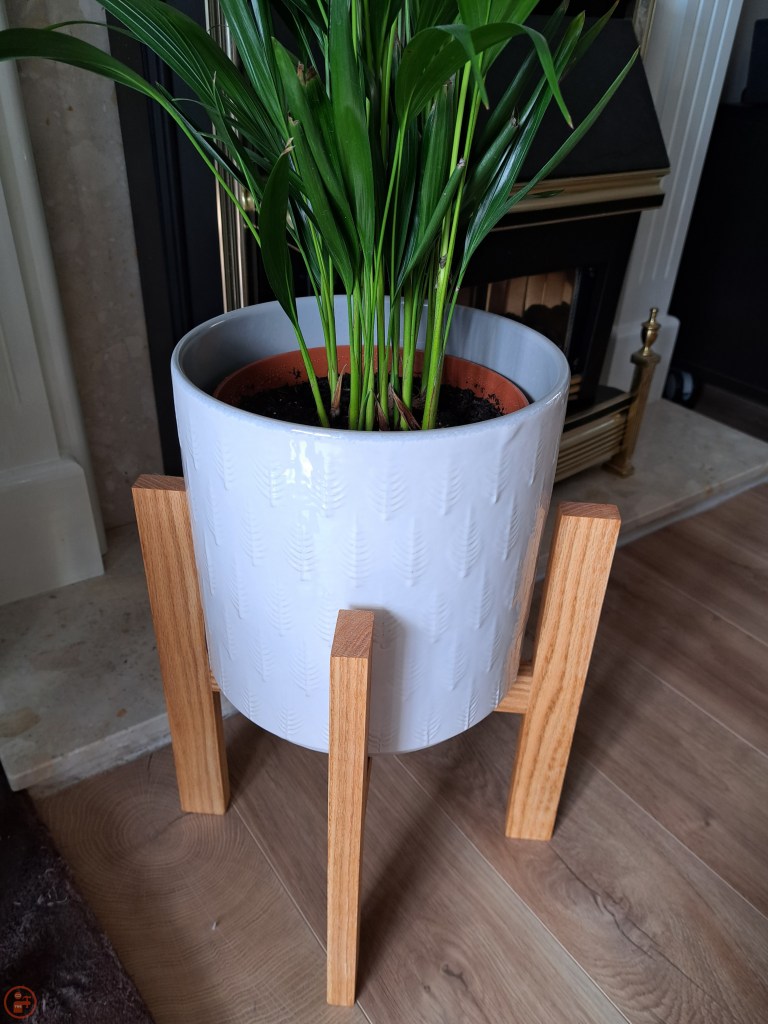 A number of our house plants outgrew their pots and needed repotting into larger pots so they had more room to grow. For the palm, the pot was now quite large, so I decided to make an oak plant pot stand to lift it up off the floor.