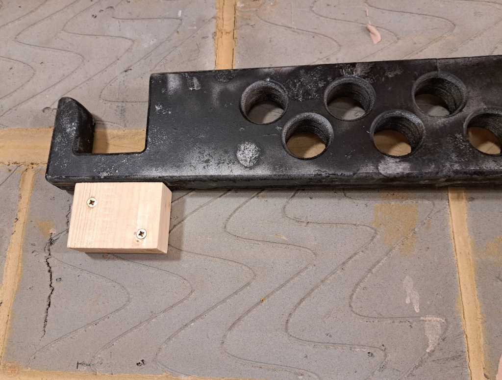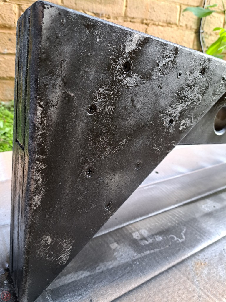 I cut some triangle pieces from some more mdf, two larger and one smaller, and attached these to the opposite end to the hook. These provide additional support for the hinges and help stop the boom arm sagging.