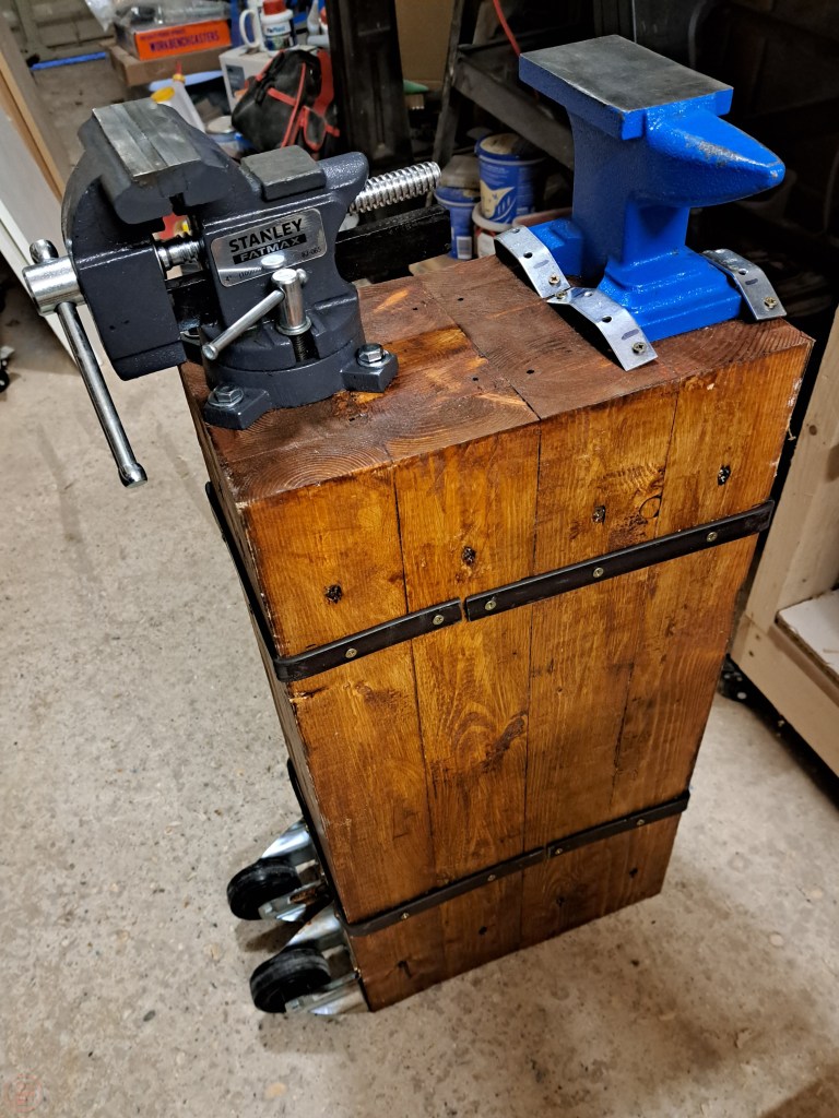 As I have progressed my woodworking, I found several projects have needed metal brackets or shaped metal parts to strengthen the design. I decided to invest in a small anvil and a metalworking vice. Time to make a portable-but-sturdy stand for them both to sit on!