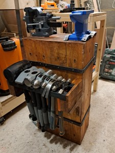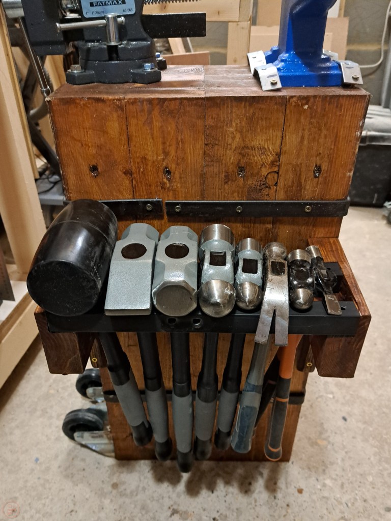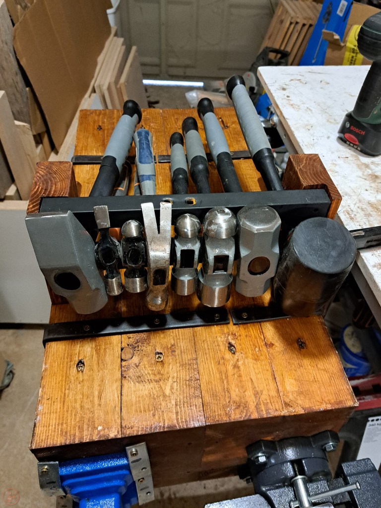 I mounted the hammer holder to one side, on the opposite side to the vice jaws, so the hammers don’t get in the way. I really like how the holder looks and how easy it is to us, as I can quickly grab whatever hammer I need and then just drop it back into the holder, where the metal bars keep it securely held.